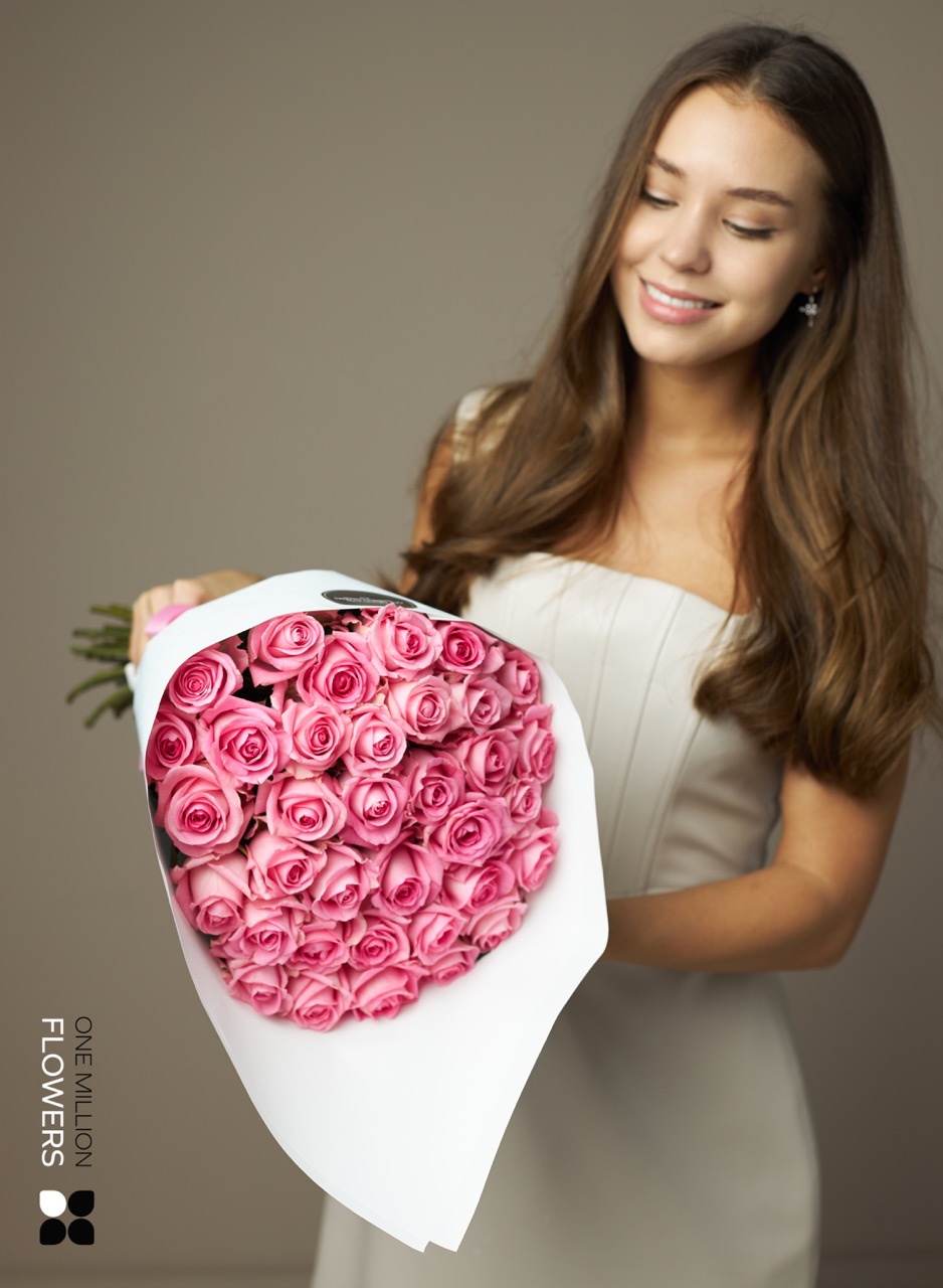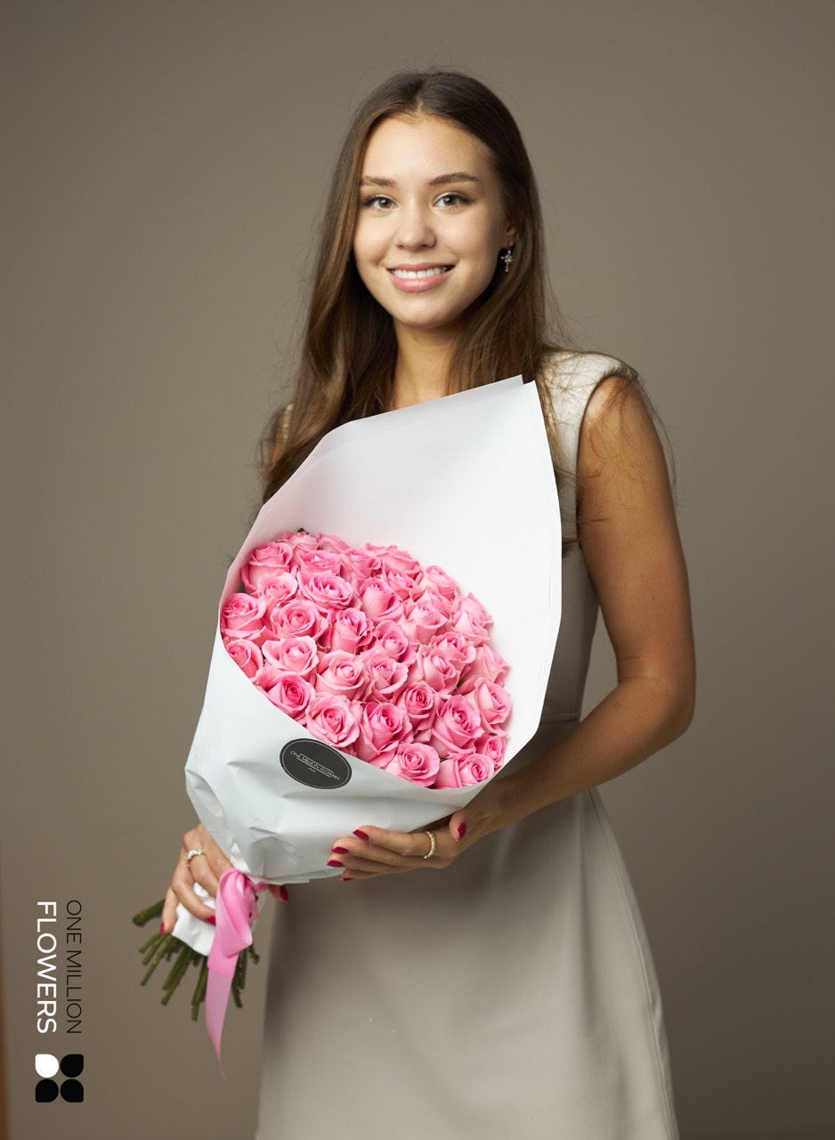 Каждая роза в этом букете достигает высоты 40 см, что добавляет изысканности композиции. Наша команда флористов осторожно составляет каждый букет таким образом, чтобы передать самую яркую красоту этих цветов.