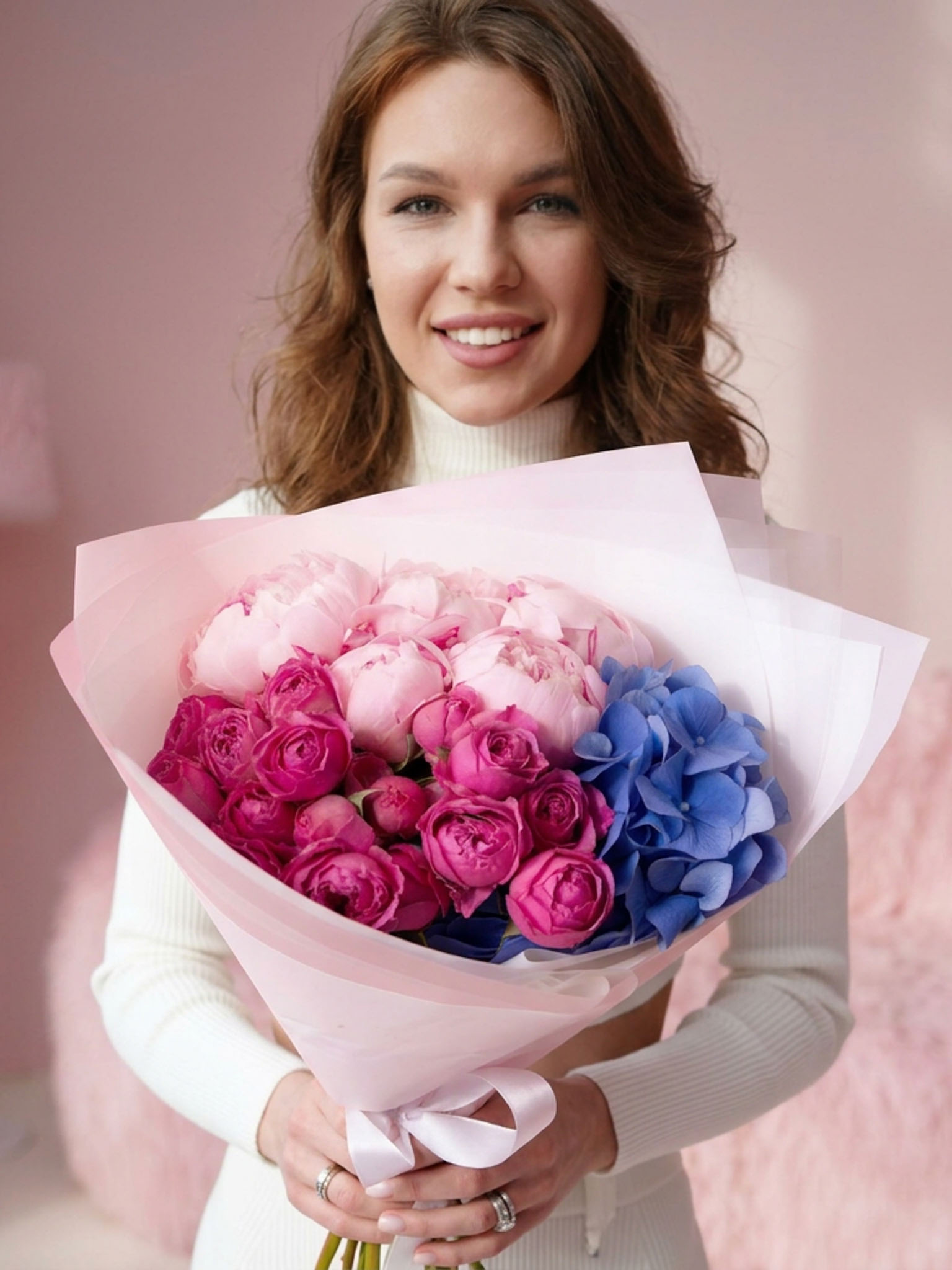 Этот букет станет великолепным подарком для ваших близких и мечтательным акцентом на любом торжественном мероприятии. Его яркие и нежные оттенки розы и пионы оживят любое пространство, принесут радость и создадут атмосферу уюта. Заказывайте букеты "Сара Верона Мисти" White и дарите свои чувства с натуральной красотой.